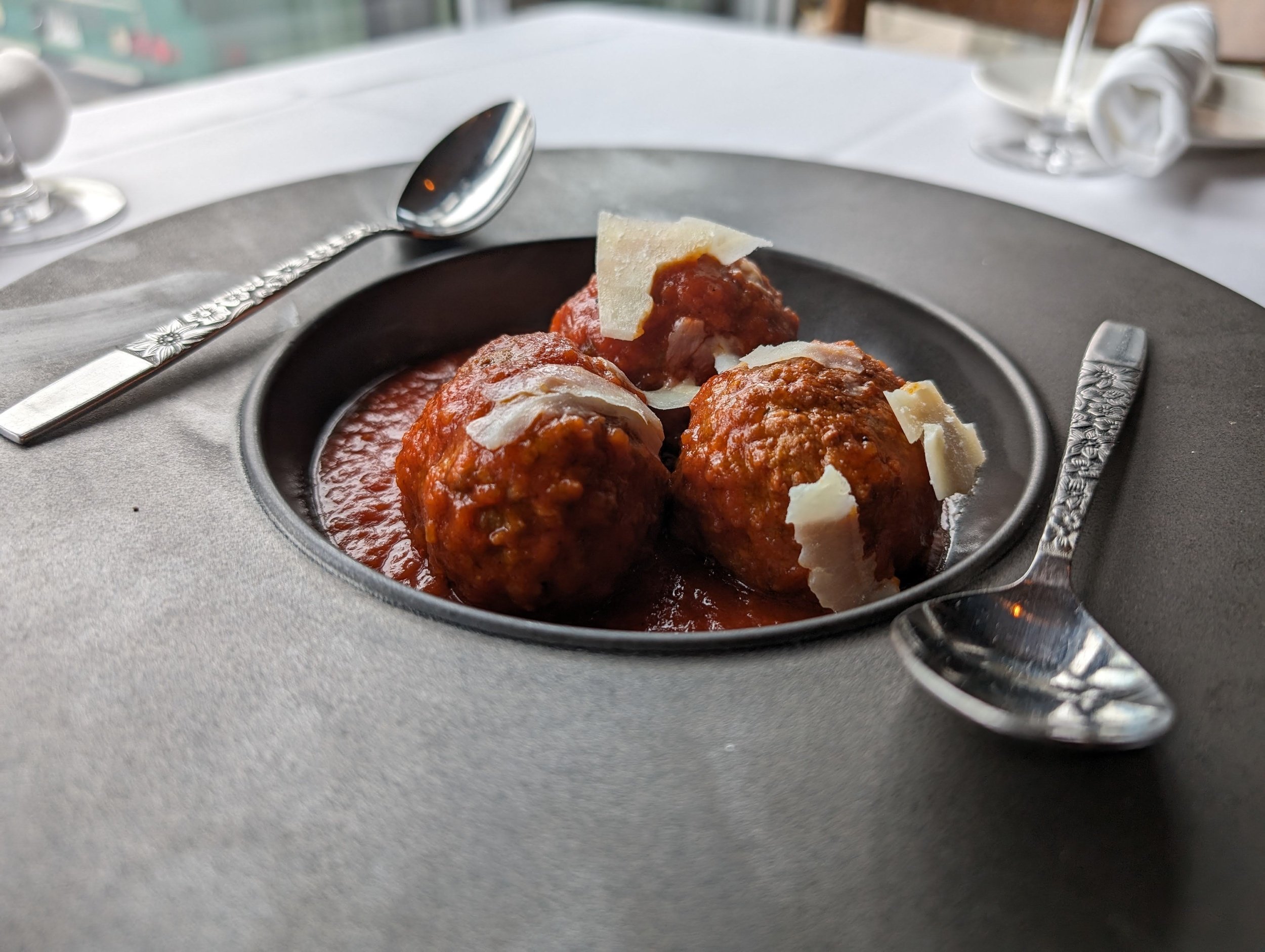 Meatballs $18 3 meatballs beef, breadcrumbs, egg, onion, Romano cheese, in our homemade pomodoro sauce